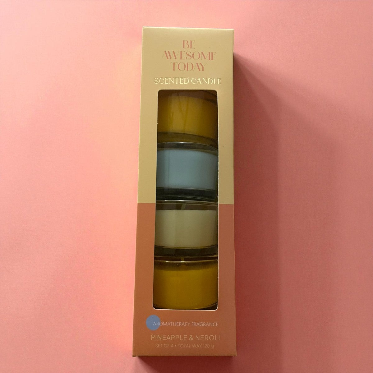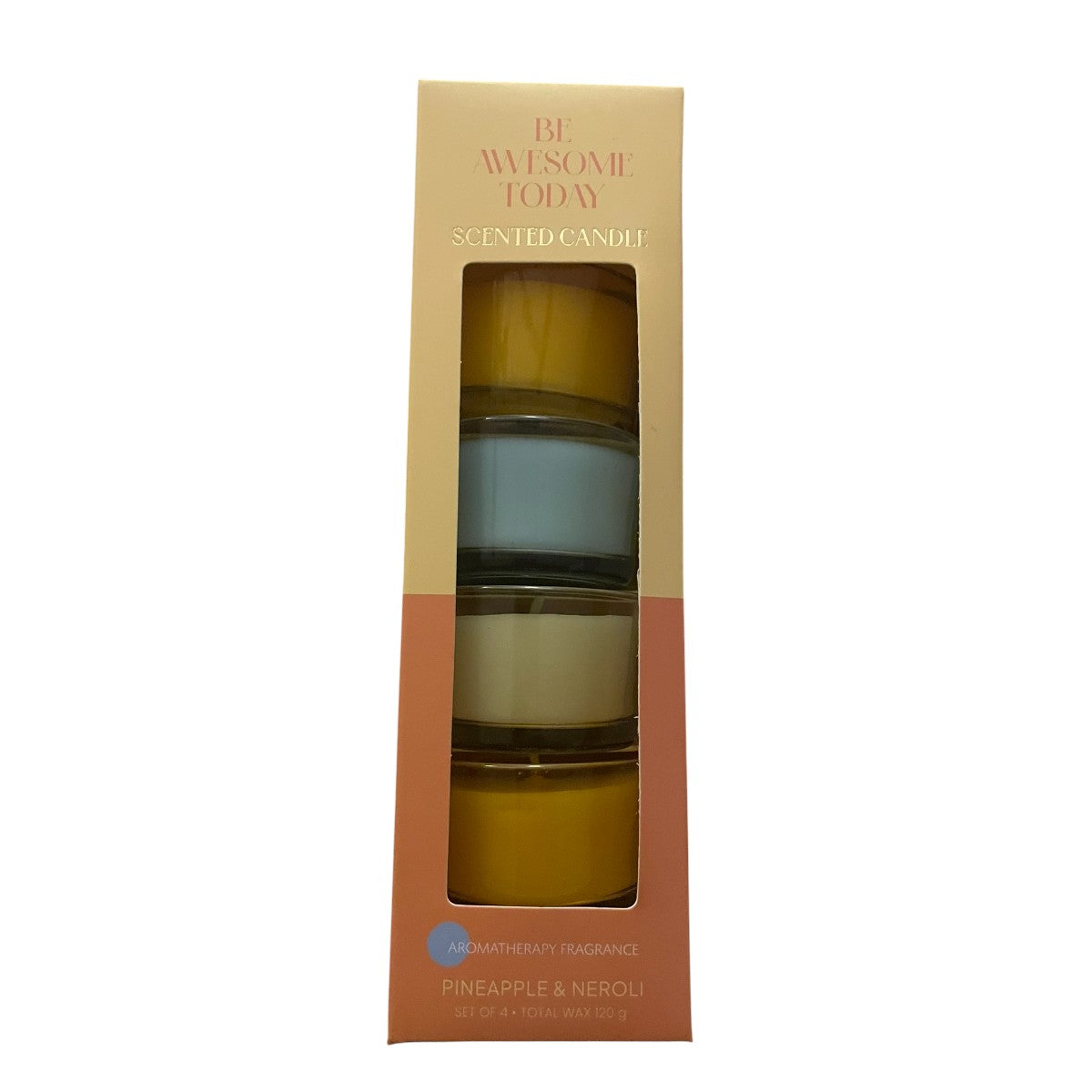 🕯️ Geschenkset – Set van 4 geurkaarsen in glas “Be Awesome Today” – geur Pineapple & Neroli