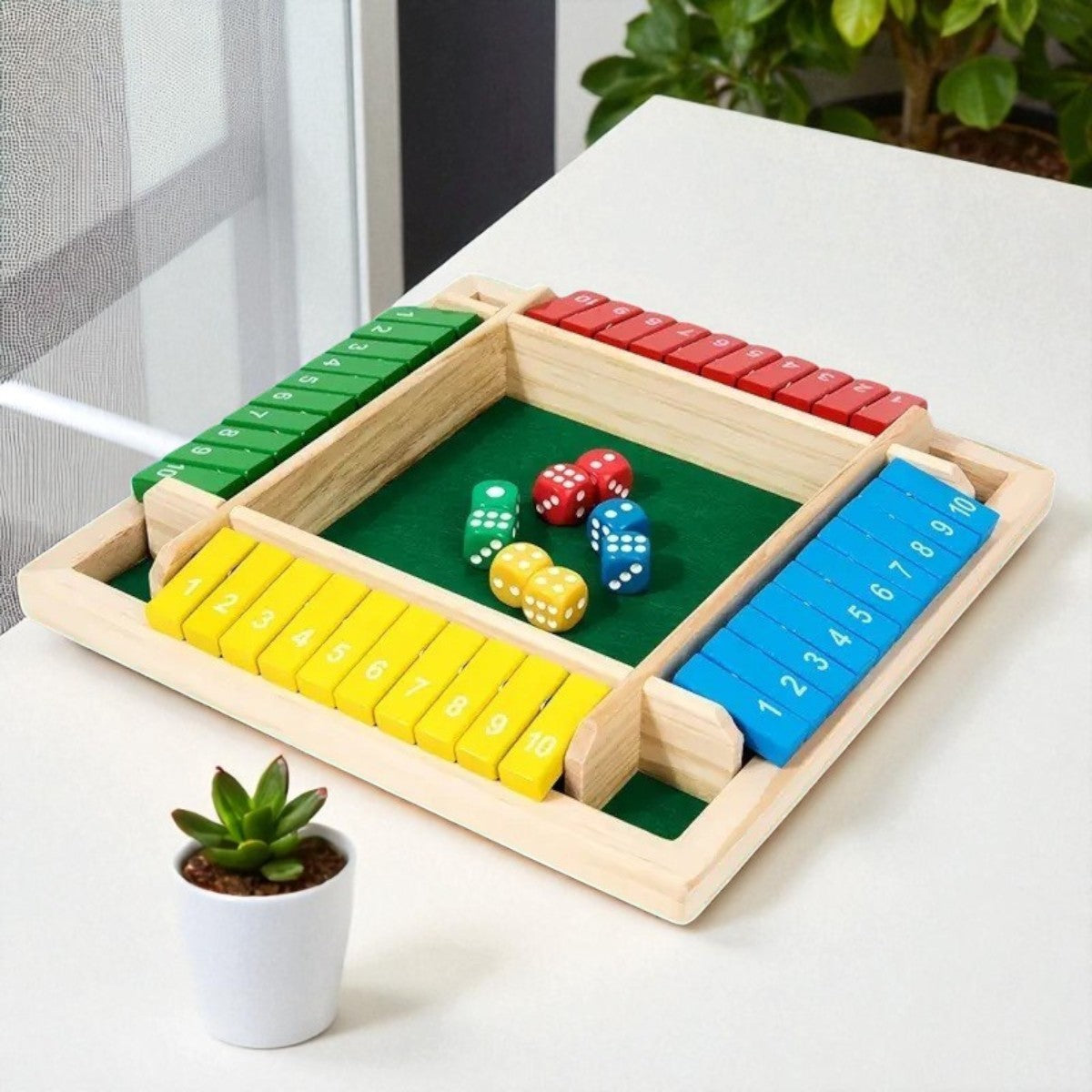 Ontdek het plezier van Shut the Box, een klassiek en educatief dobbelspel in een kleurrijke uitvoering! Dit houten tafel bordspel is perfect voor 2 tot 4 spelers en zorgt gegarandeerd voor uren speelplezier met vrienden en familie.