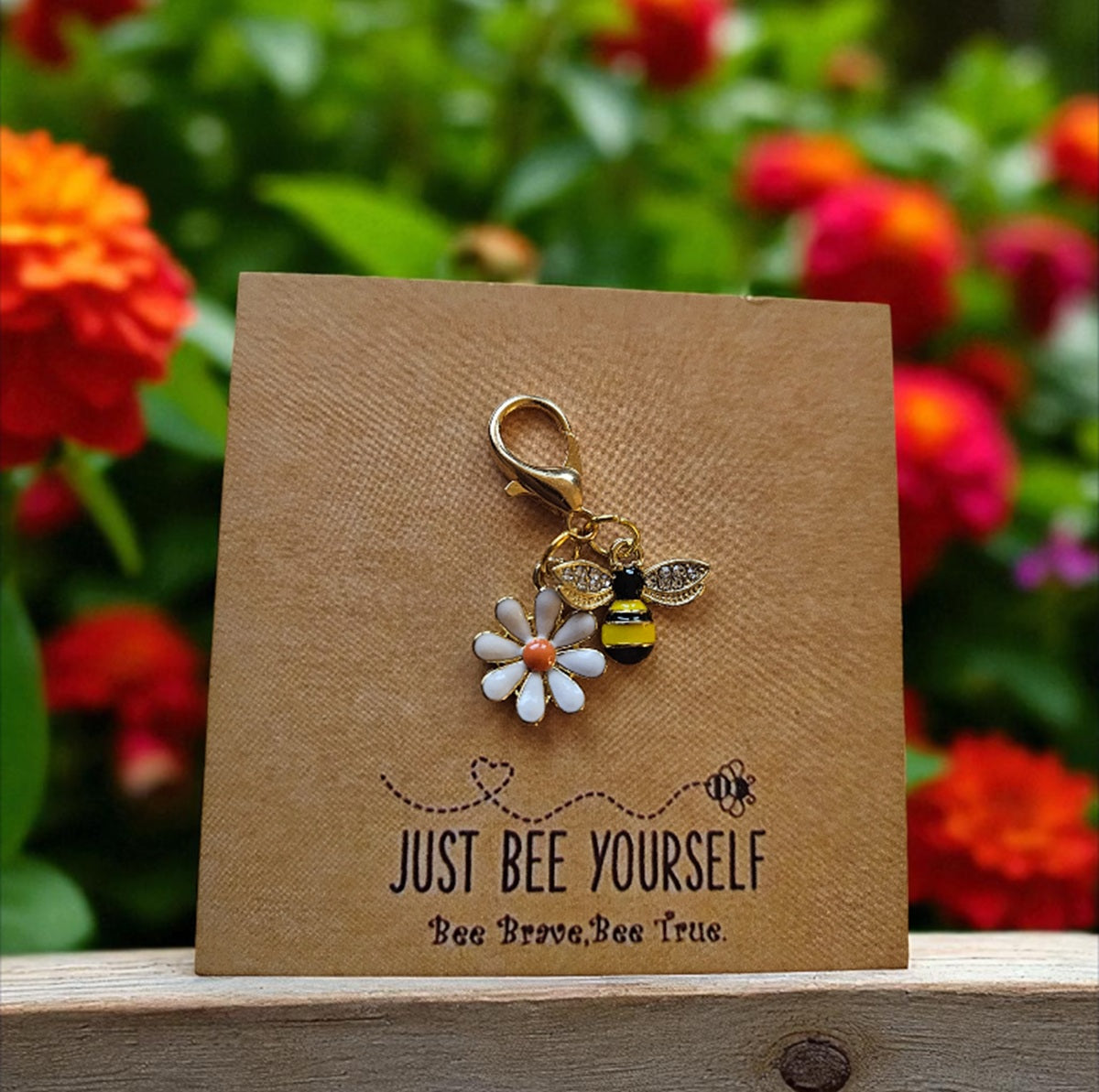 Dit prachtige hangertje met een bij en een madeliefje is een uniek accessoire met de inspirerende tekst "Just Bee Yourself". Het hangertje is gemaakt van duurzaam metaal en straalt speelsheid en positiviteit uit.