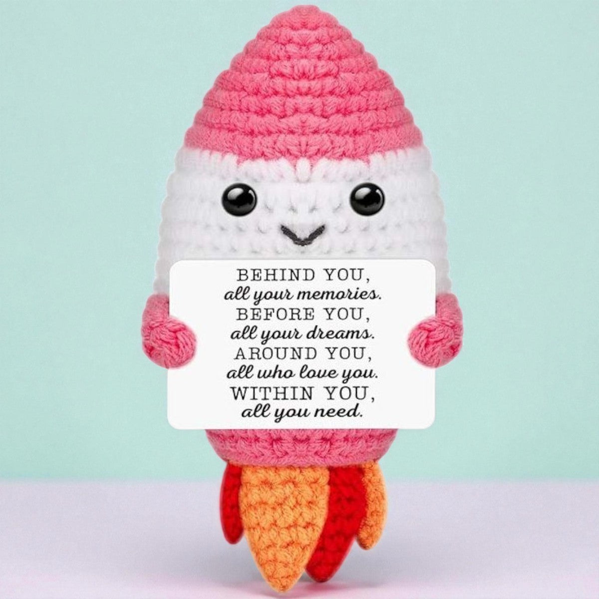 Positive Rocket – gehaakt knuffeltje met kaartje (12 cm)