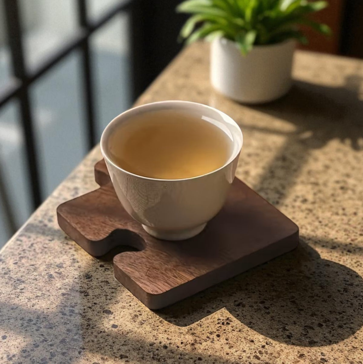 Maak je tafel extra bijzonder met deze originele set van 4 houten puzzel onderzetters!