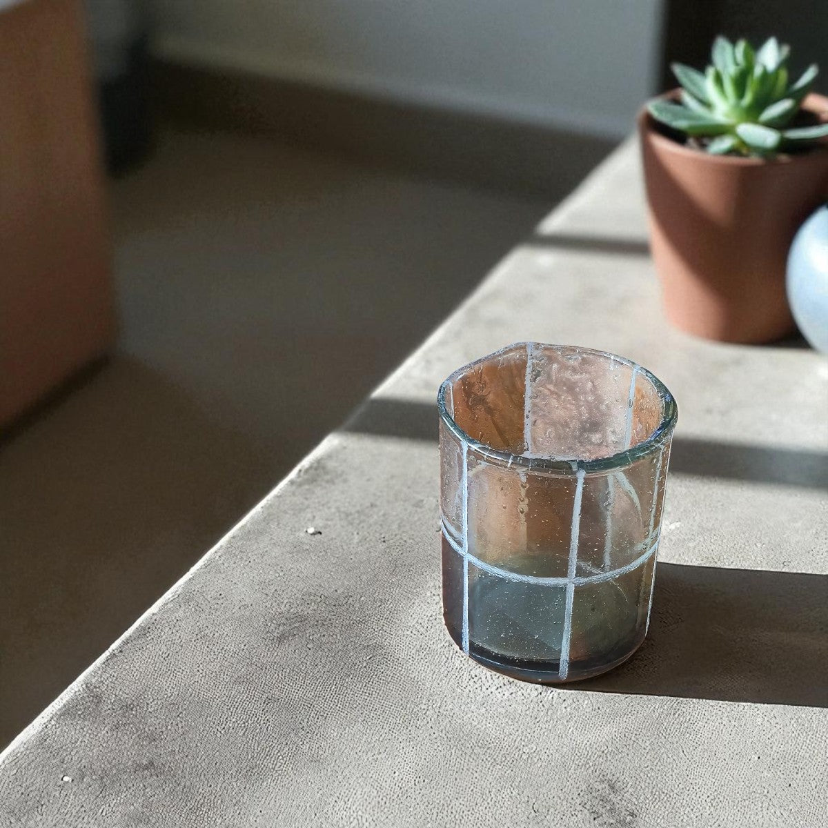 Met een afmeting van 7,5 x 7,5 x 9 cm is deze waxinelichthouder compact genoeg voor op tafel, een vensterbank of een dressoir. Het blokpatroon in het glas zorgt voor een speels lichteffect dat direct een warme en huiselijke uitstraling geeft.