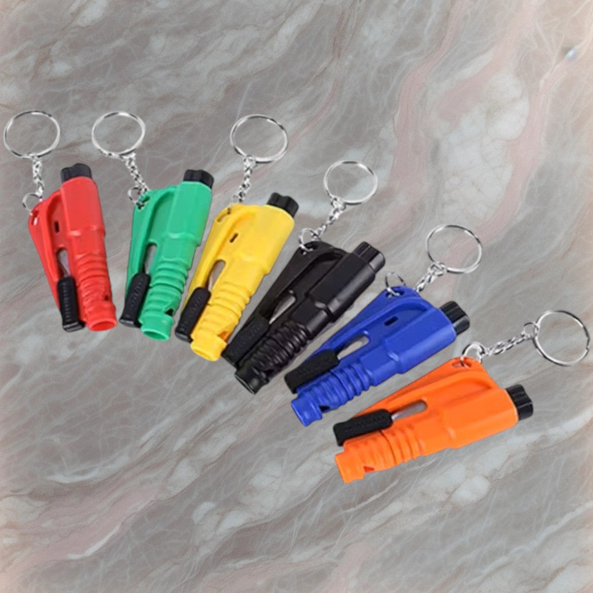 Veiligheids Sleutelhanger met Gordelsnijder, Raamhamer & Fluitje