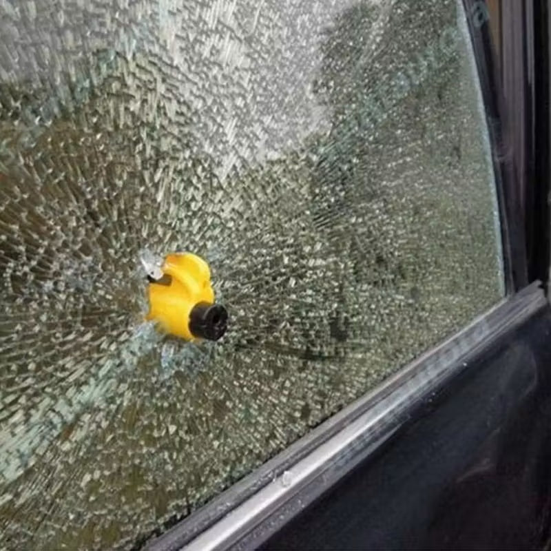 - ✔ Raamhamer – druk de sleutelhanger tegen het autoraam en activeer het mechanisme; het glas breekt direct.